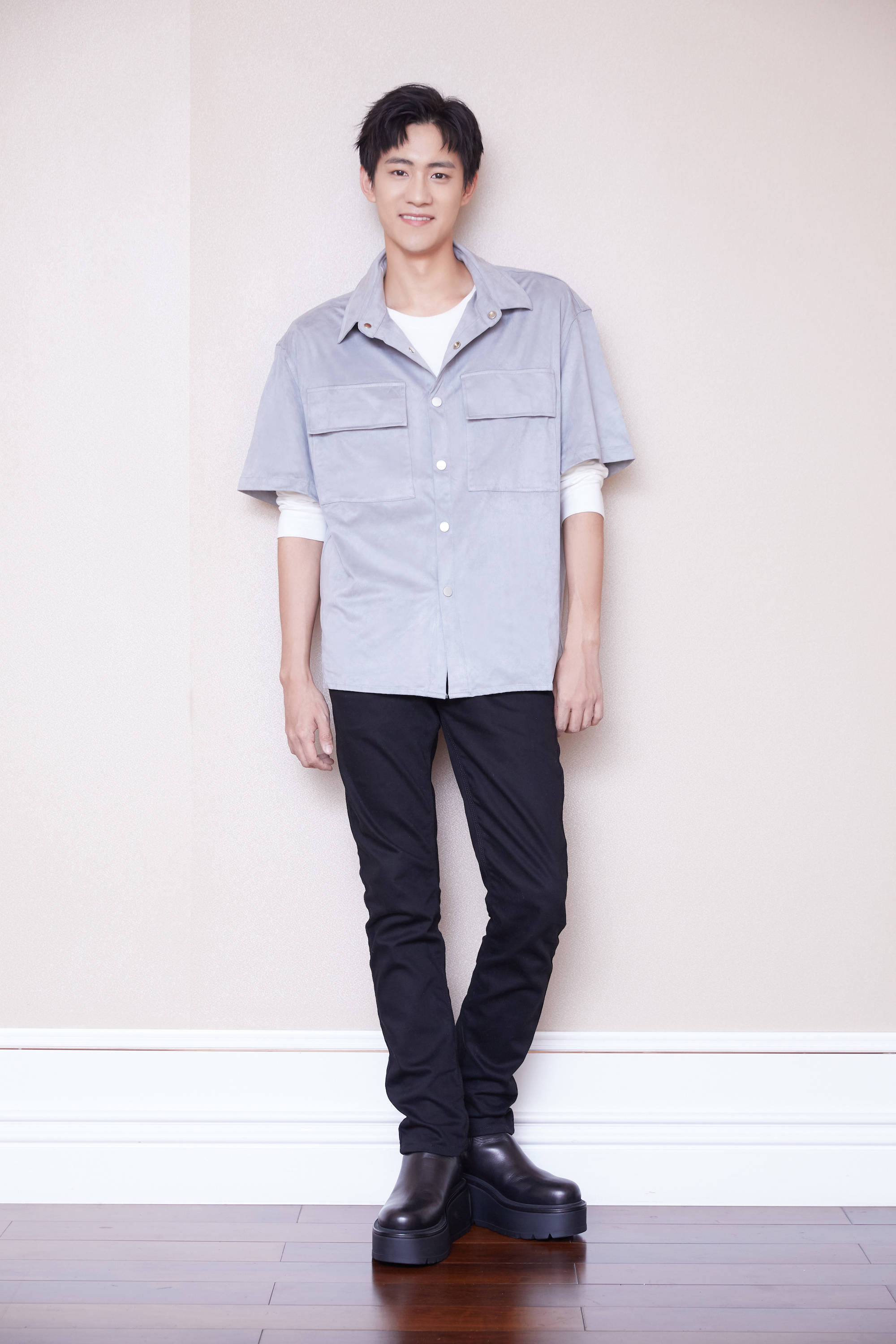 演员晏紫东日前曝光了一组生日写真。晏紫东身穿蓝紫衬衫叠搭白色T恤,简约干净的造型别具巧思;清爽利落的外表,标志性的阳光笑容让人印象深刻。